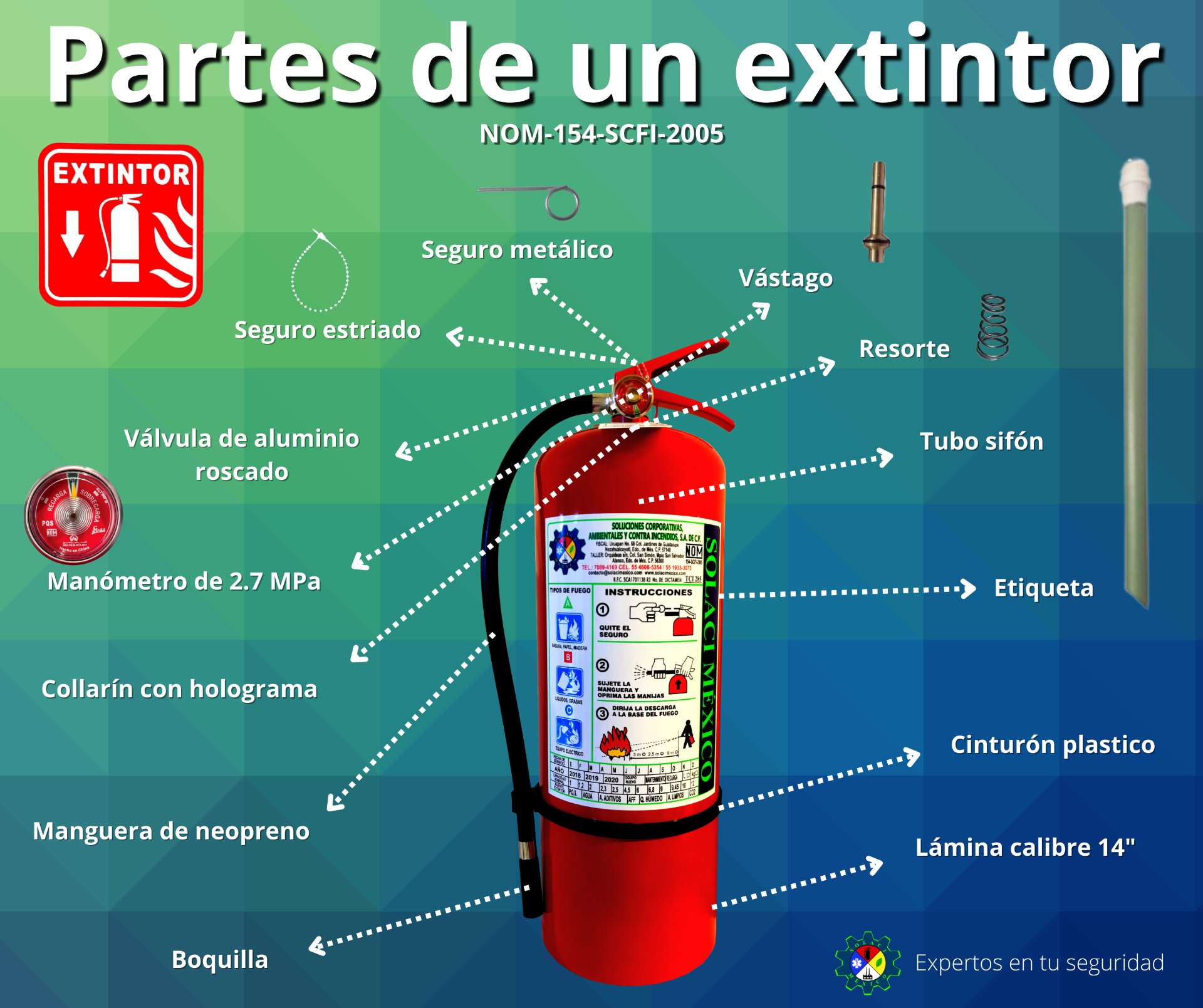 A nivel nacional contamos con la NORMA Oficial Mexicana NOM-154-SCFI-2005, Equipos contra incendio-Extintores-Servicio de mantenimiento y recarga, para regular a las personas fisicas o morales que desarrollan esta actividad. Deberán de contar con un numero de dictamen que emite una Unidad de Inspección aprobada ante la Entidad Mexicana de Acreditación (EMA) aprobada y vigente.